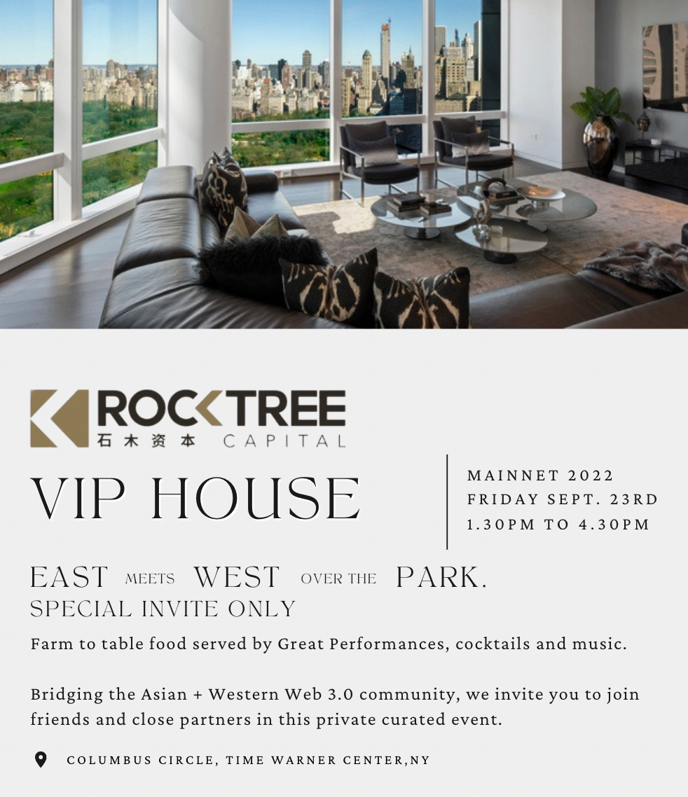在这个具有纪念意义的时刻,9月23日,RockTree Capital 在曼哈顿中心地标性建筑-Time Warner Center举办了一场由 Web 3.0 行业领导者组成的 VIP 聚会,出席嘉宾包括Fenbsuhi、Hashed、Shima Capital、SNZ、红杉、火币和 Galaxy、Republic、Bixin、Collider、Coral Capital、JP Morgan、Monday Capital、TRGC、Protagonist、100 Acre Ventures、DAO5、Ropart、Stratified Capital、Mechanism Capital等等。